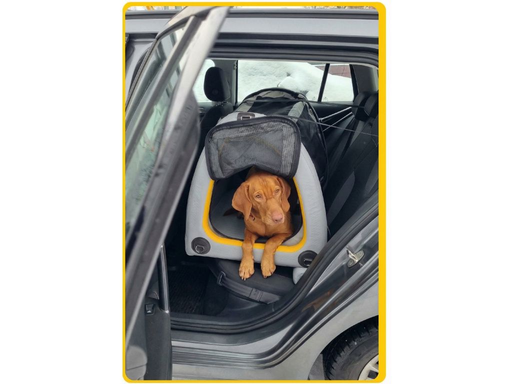 TAMI box do auta je revoluční NAFUKOVACÍ box pro psa s CRASHTESTEM, ktery díky své technologii zajistí tvému psovi maximální bezpečí i pohodlí. Je neuvěřitelně lehký, skladný a během minuty připravený na vaše společná dobrodružství.